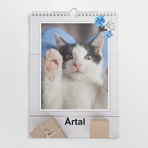 Fotoalmanacka 2026 i storlek A4 210x297 mm. Prisvärd och snygg kalender som passar perfekt som årskalender. 13 blad, framsida samt 12 månadsblad. Praktisk upphägningskrok i mitten. Skyddande frostad framsida. Skapa direkt online eller ladda ner vårt program för ännu mer redigeringsmöjligheter