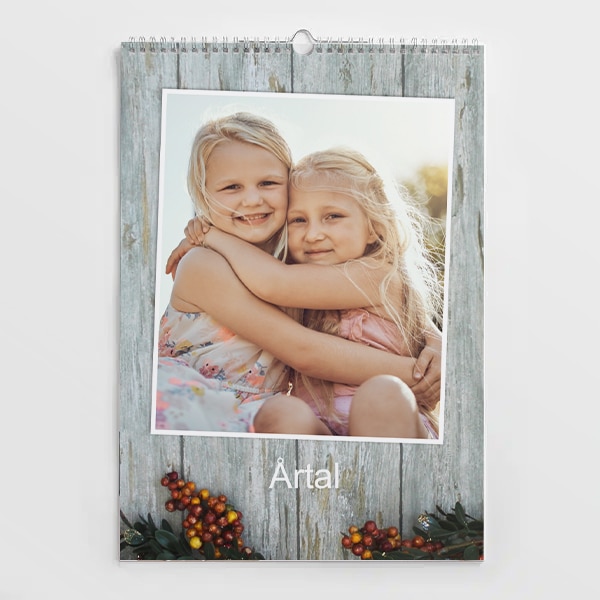 Fotoalmanacka 2026 i storlek A3, 297x420 mm. Framsida med tema julafton samt 12 månadsblad. Fin present eller julklapp. Hängs i överkant. Här får du en stor framsida att placera foto på. Skapa direkt online eller ladda ner vårt program för ännu mer redigeringsmöjligheter.