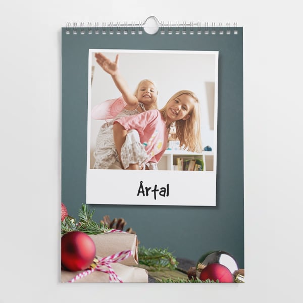 Fotoalmanacka 2026 i storlek A4 210x297 mm. Kalender med tema jul. 13 blad, framsida samt 12 månadsblad. Praktisk upphägningskrok i mitten. Skyddande frostad framsida. Skapa direkt online eller ladda ner vårt program för ännu mer redigeringsmöjligheter