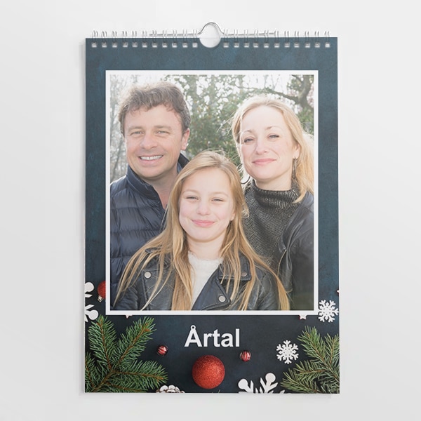 Fotoalmanacka 2026 i storlek A4 210x297 mm. Kalender som passar perfekt till julklapp. 13 blad, framsida samt 12 månadsblad. Praktisk upphägningskrok i mitten. Skyddande frostad framsida. Skapa direkt online eller ladda ner vårt program för ännu mer redigeringsmöjligheter