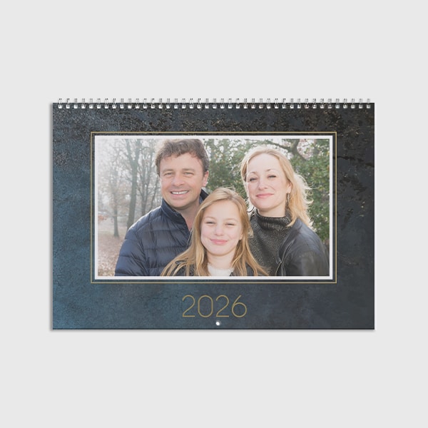 Klassisk fotoalmanacka 2026 i storlek A3 297x420 mm. utfälld. Framsida med passande tema för ett nytt år samt 24 sidor. Månad på ena delen och bild på andra. Vår bästsäljare. Skapa direkt online eller ladda ner vårt program för ännu mer redigeringsmöjligheter