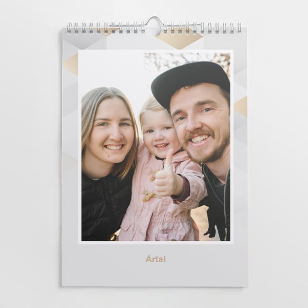 Fotoalmanacka 2026 i storlek A4 210x297 mm. Kalender som passar perfekt som present. 13 blad, framsida samt 12 månadsblad. Praktisk upphägningskrok i mitten. Skyddande frostad framsida. Skapa direkt online eller ladda ner vårt program för ännu mer redigeringsmöjligheter