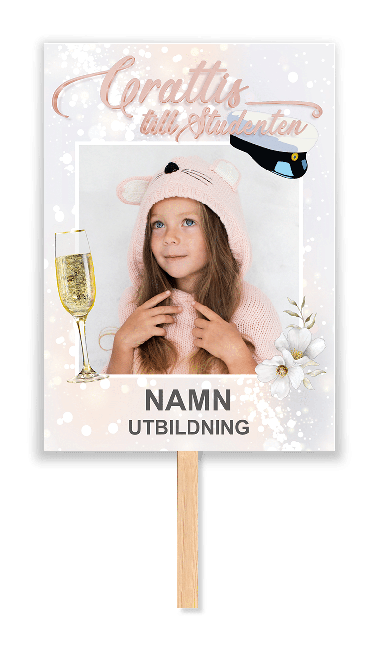 Studentskylt med rosa stilren design.