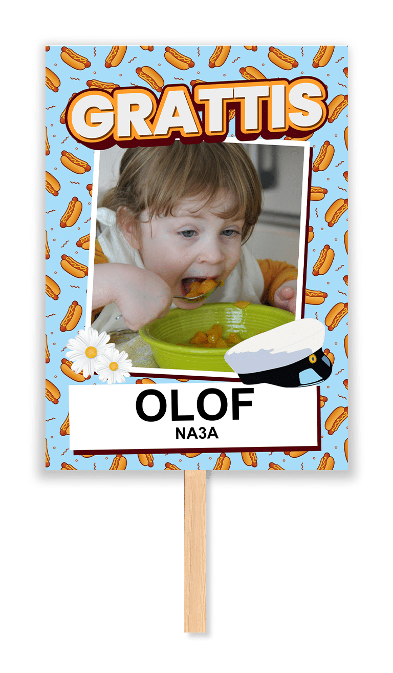 Studentskylt med rolig och fartfull design.